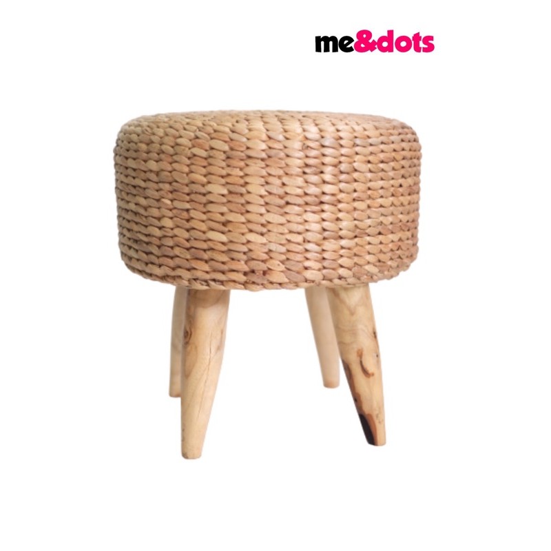 Rincian :1. Bahan enceng gondok2. Kaki bahan jati3. Diameter 43cm4. Tinggi 43cm5. Selain sebagai stool atau bangku, bisa difungsikan juga sebagai meja atau side
