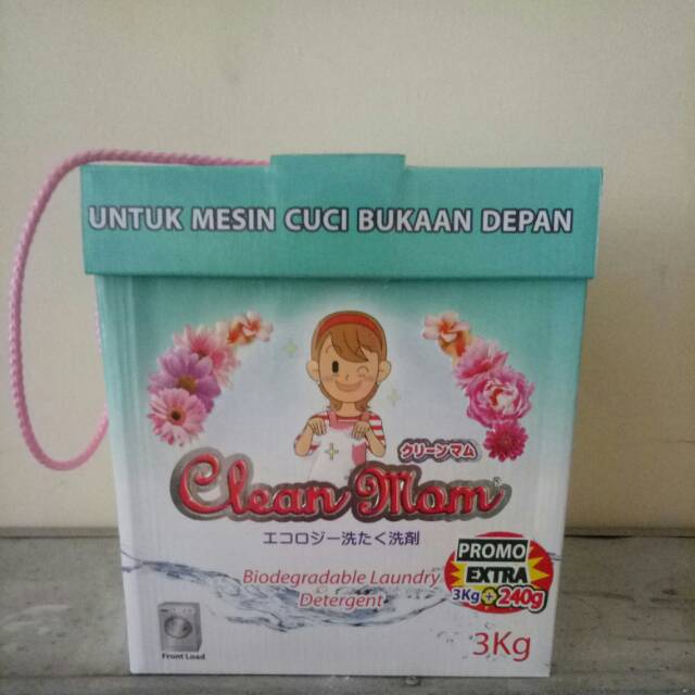 ***Kabar Gembira **** untuk pembeli produk CLEAN MOM dari kota SURABAYA bisa *** FREE ONGKIR***Sesuai dengan jumlah pembelian***untuk mengetahui jadwal pengiriman FREE ONGKIR bisa CHAT kami terlebih dahulu. Biodegradable Laundry Detergent 3 Kg + 240gUntuk mesin cuci Front Load (bukaan depan)Kandungan utama Clean Mom berasal dari ekstrak tumbuhan kelapa. tumbuhan mengikat karbondioksida diudara yang diperlukan untuk proses fotosintesis serta menjadi penyeimbang temperatur udara dibumi. Dengan memakai Clean Mom, berarti membantu mengurangi efek pemanasan global yang diakibatkan oleh produk yang berbahan dasar minyak bumi.- Mengandung DISINFEKTAN, sehingga aman untuk untuk cucian dijemur didalam ruang yang tertutup. - Komposisi Surfactant yang digunakan berasal dari bahan baku nabati, sehingga ramah lingkungan dan lembut ditangan. - Tidak mengandung Fluorescent Whitening Agent, sehingga aman untuk pakaian yang berwarna muda. - Aman digunakan untuk mencuci pakaian bayi. - Bahan dasar dari tumbuhan kelapa, sehingga dapat mencuci secara maksimal dengan deterjen minimal.- Dengan formula ANTI BAKTERI membuat pakaian tidak bau jika dijemur didalam rumah.-Tidak mengandung pemutih.Diproduksi dengan mengunakan teknologi JEPANGKEMENKES RI PKD 20202710270#sabuncucibaju#deterjen#la