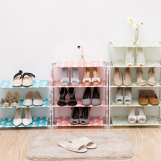 Rak Sepatu 3 Susun dan 4 SusunTerdapat 3 dan 4 susun dengan masing2 motif: Biru Beruang, Pink Beruang dan Hijau Flamingo3 Susun: 47 x 39 x 23 cm4 Susun: 47 x 57 x