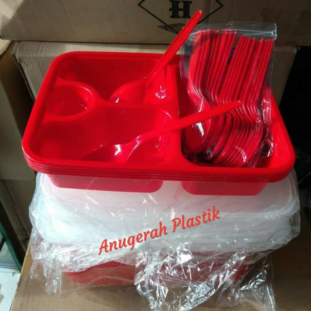 Harga Gila Perlengkapan di Kabupaten Banjarnegara Set Lunch Box Sekat 4 + Tutup & Sendok Makan Merek Fim ( Merah ) dari Toko Anugerah Plastik Kota Jakarta Barat