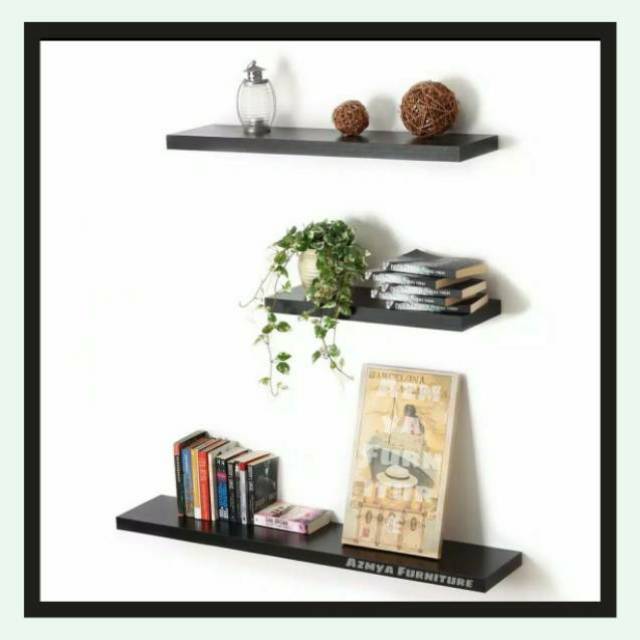 Rak dinding 3pcs sesuai gambarDeskripsi Produk :#Rak Hambalan 3 pcs - Panjang 30 x Lebar 10 x Tebal 2.5cm (1pcs) - Panjang 40 x Lebar 10 x Tebal 2.5cm (1pcs) - Panjang 50 x Lebar 10 x Tebal 2.5cm (1pcs) Produk Terbuat dari Bahan Kayu Bukan Multiplek/MDF, sehingga produk lebih kokoh tahan terhadap kelembapan dan pastinya Lebih Awet. INGAT bahan dari KAYU lo kak bukan MULTIPLEK. :)Finishing Memakai Cat Duco, Bukan Deco/sejenis Stiker/skotlet. sehingga warna tidak cepat Pudar dan lebih awet. Tersedia Berbagai macam Warna Hitam, Merah, Putih dll, bisa request warna yang diinginkan untuk menyesuaikan ruangan anda. Kelengkapan :termasuk Braket Paku sehingga anda sudah tidak perlu membelinya. 2. Lengkap dengan Panduan Pemasangan dari kami. Pemasangan Mudah jika tidak ada Bor bisa pakai Pa