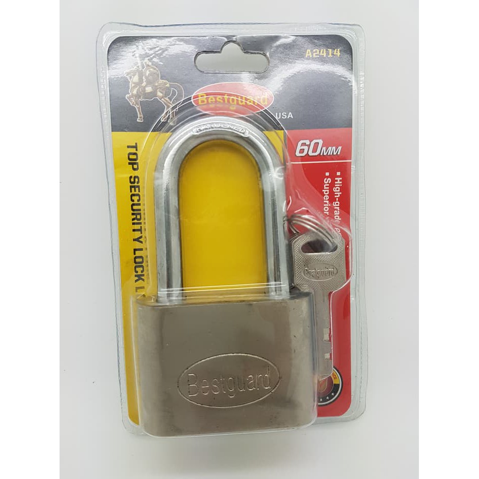 SILAHKAN BARANG KAMI READY BISA LANGUSNG DI PESAN PESEN HARI INI, DI PROSES HARI YANG SAMAGembok BESTGUARD 60mm.Leher PANJANGHigh grade processingsuperior workmanshipGembok ini sudah weatherproof.Merk BESTGUARD ( kualitas bagus ).Dapat 3 mata kunci.SILAHKAN BARANG KAMI READY BISA LANGUSNG DI PESAN PESEN HARI INI, DI PROSES HARI YANG