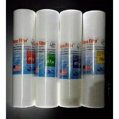 AVAILABLE UKURAN 1, 3 & 5 Micron Cartridge Filter Sedimen untuk filter air / water filter housing dengan ukuran 10" Merk NanoBerfungsi untuk menyaring partikel - partikel sedimen padat yang ada dalam air, seperti pasir, lumpur, lumut, kerak, karat, dsb.Penggunaannya cukup dimasukkan ke dalam housing filter 10" dan diganti ketika filter sudah kotor / tekanan air berkurang (mampet).Usia pemakaiannya sangat tergantung dengan kualitas air, untuk air PAM biasanya 2-6 bulan, sedangkan air sumur sekitar 2minggu - 2 bulan. Note : Mohon cantumkan ukuran micron yang diinginkan, jika tidak akan kami kirimkan secara random.Selamat datang di lapak kami.barang kami ready kak , bisa langsung di pesan ya makasih Selamat berbela