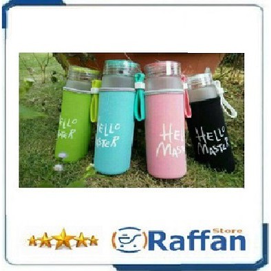 "Botol minum kaca dengan Tulisan Menarik Hello Master, untuk menyimpan berbagai minum anda.*Free PouchKapasitas : 480MLWarna : Sesuai dengan VariasiPouch sesuai Warna Botol, Kecuali warna Ungu!Material : Kaca , anti panasWARNA NYA KOSONG, AKAN DIKIRIM RANDOM TANPA PEMBERITAHUAN TERLEBIH DAHULU.MEMBELI = SETUJUNO KOMPLAIN, NO REFU