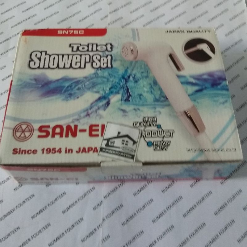 Jet ShowerMerk : SAN EIType : SN 75CWarna : PutihMaterial : ABS TebalDetail-Drat 1/2 inch-Panjang selang 1.2 meterIsi box-1 kepala jet shower-1 selang shower-2 seal shower-1 bracket showerOriginal SAN EI Indonesia (made in INDON