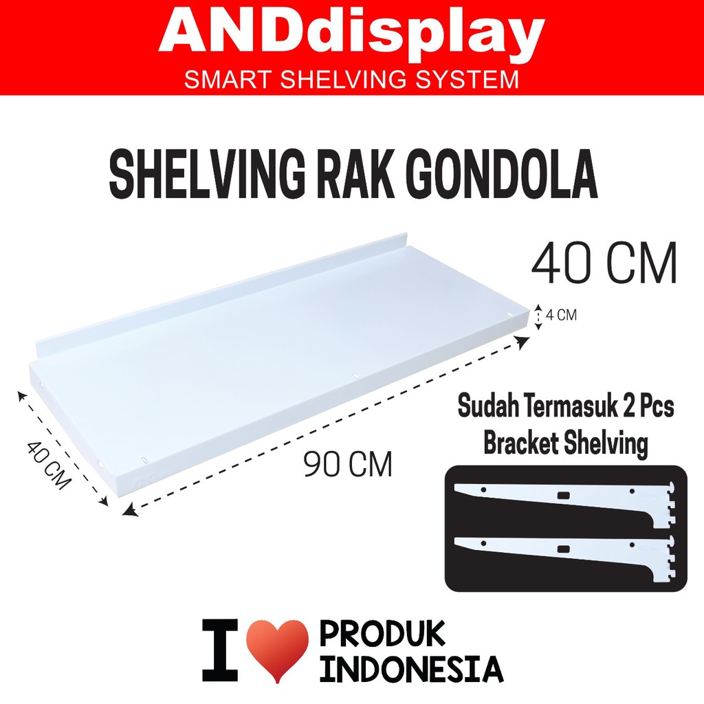 SHELVING GONDOLA/SUPERMARKETUKURAN 40 CMPANJANG 90CMWARNA PUTIHSUDAH TERMASUK DAUN BRACKETMADE IN INDONESIAPRODUCT BY ANDDISPLAYHARAP DI BACA :BUKA JAM 09.00 - 17.00 HARI MINGGU DAN TANGGAL MERAH TUTUPBARANG YANG KAMI KIRIM SUDAH KAMI CEK TERLEBIH DAHULUKERUSAKAN SEWAKTU PENGIRIMAN DI LUAR TANGGUNG JAWAB KAMI,KALAU MAU KOMPLAIN MASALAH KERUSAKAN BARANG SEWAKTU PENGIRIMANSILAHKAN KOMPLAIN KE PIHAK KURIRNO RETUR NO KOMPLAINMAKSIMAL ORDER DITERIMASENIN-JUMAAT JAM 15.30 ,SABTUJAM 14.30 ,JIKA ADA ORDER LEWAT DARI YANG DITENTUKANMAKA AKAN DIKIRIM PADA SAAT HARI KERJATERIMAKASIH SUDAH BERBELANJA DI LAPAK