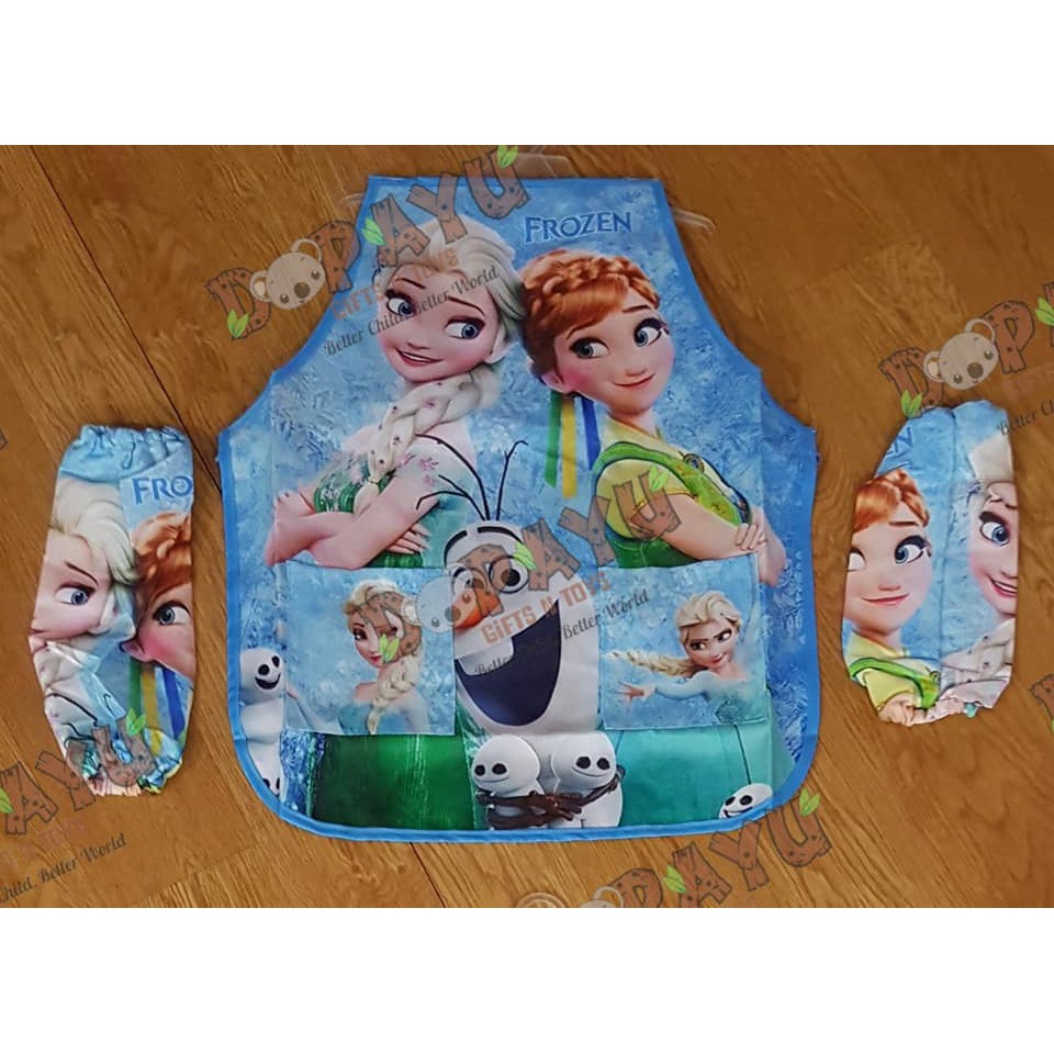 Celemek Anak Karakter/Apron Lukis/Apron Masak Size BesarApron besar 54 * 42cm manset: 24 * 15cm (cocok untuk 5-8 tahun) Bahan PVC waterproof Celemek Anak tahan air, lengan dua potong: penggunaan kain single-layer, tahan air, anti-minyak, lembut dan nyaman, nyaman meskipun musim panas. Anak biasanya makan,melukis,coret2i, bermain dengan pasir, atau mengikuti ekstrakulikuler memasak. Dengan Apron gambar kartun ini, ibu tidak lagi perlu khawatir tentang pakaian kotor. Tersedia gambar:- Tsum2-tsum biru- Tsum-tsum pink SOLD- Avengers SOLD- Spiderman SOLD- Frozen Pink- Frozen BiruMohon tanyakan dulu gambar yang Anda inginkan. kami siap packing